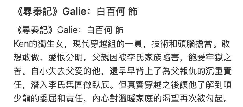 雖然看到網絡討論這個問題都認為最愛的是琴老師因為🐉是為了琴老師留在古代/琴老師長得像現代女友⬅️或許吧,但是這倆理由感覺說服不了我,所以我一直沒接受這倆觀點。。而且,龍琴拍出來好公式化喔,特別是龍對琴的感情變化感覺好僵硬,我猜編劇是想塑造龍琴之間的因緣是前世今生情緣這種,就好像無論在哪個朝代我都會愛上你。。不過,真的沒感受出來,倒是🐉留在秦朝的原因更像是逃避現實(現代社會)而作出的選擇