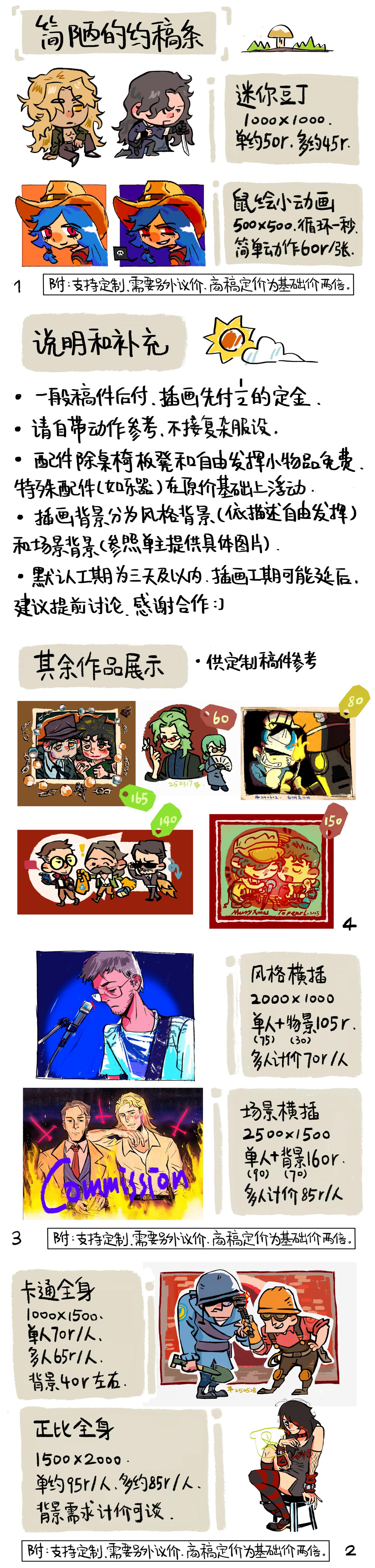 现开放以下自由职业接洽: 1️⃣插图约稿(风格例图见P1) 2️⃣翻译与嵌字(案例见P2,可接中英互译及图像嵌字)