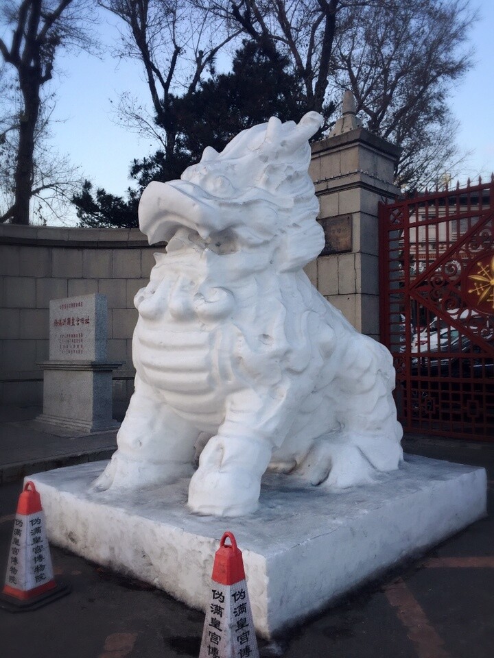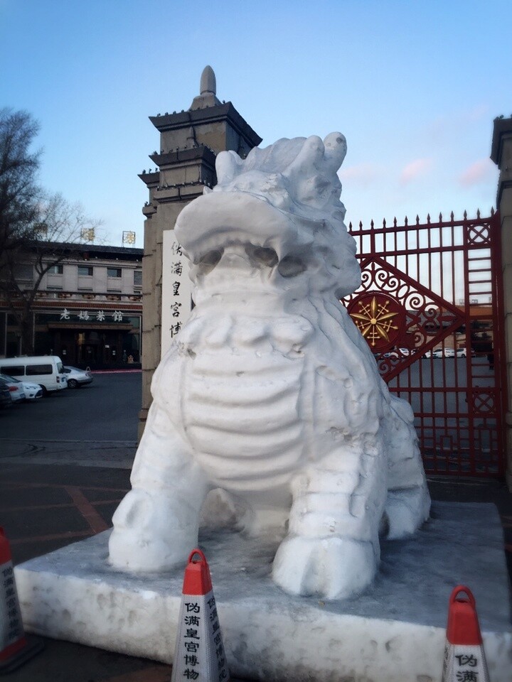 说到东北的冰雪周边,最让我惊艳的还是伪满皇宫门口这对大狮子雪雕。